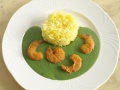 Garnelen im Backteig auf Spinatsauce (1051) |