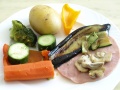 Gemüseteller mit Schinkenscheibe und Gorgonzolasauce (2297) |