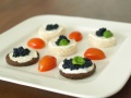 Pumpernickeltaler mit Frischkäse und Forellenkaviar (1196) |