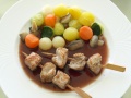 Putenspieße mit Gemüsekugeln [Brochette de dinde légumes parisienne] (1907) |